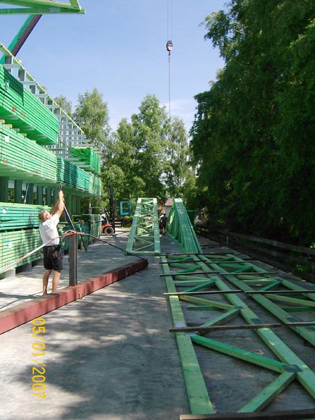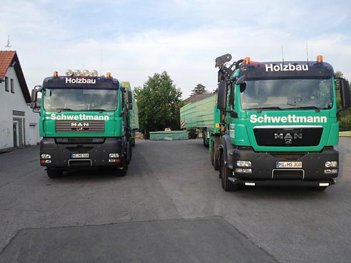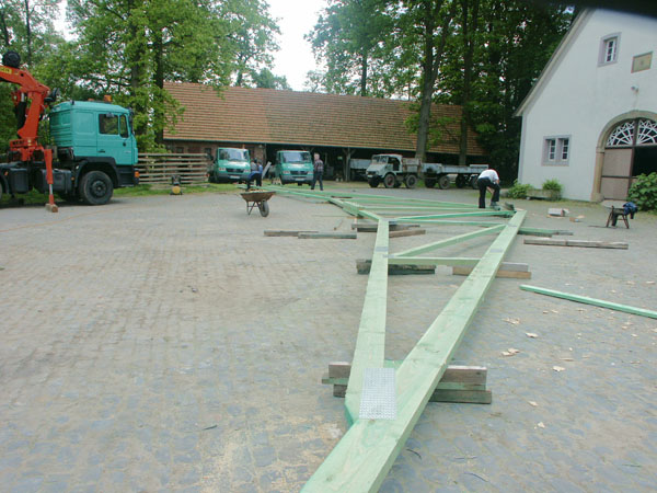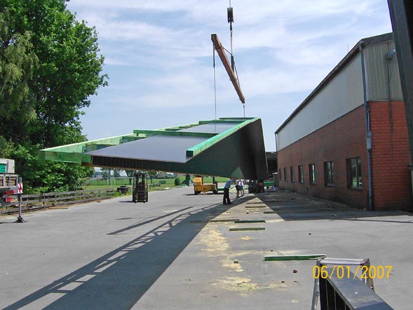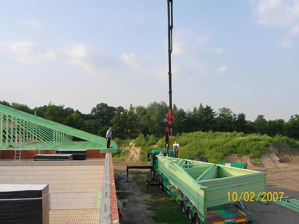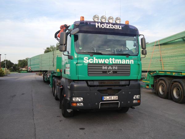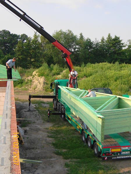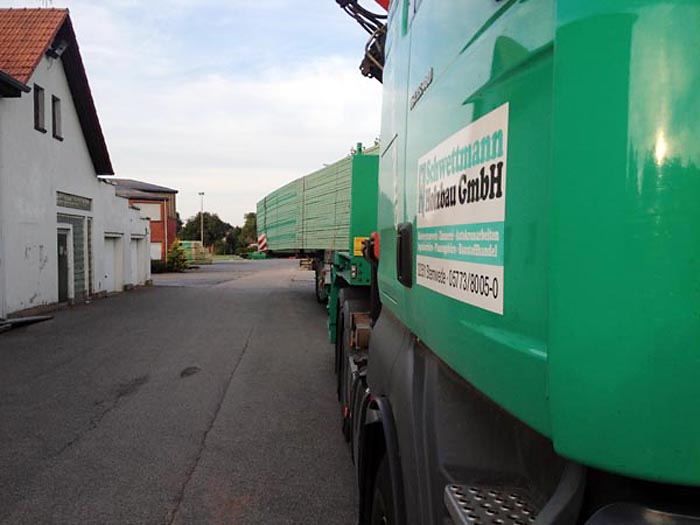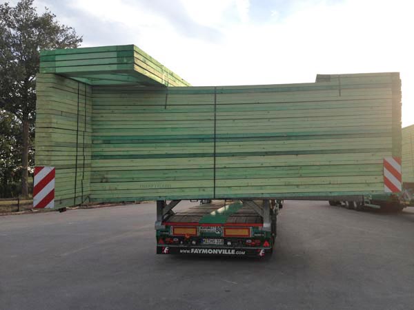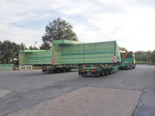 Der Transport der fertigen Binder zur Baustelle