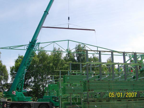 Lieferung, Richten und Fertigmontage einer Gross-Lagerhalle.