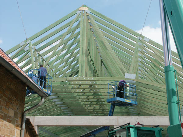 Lieferung von der Statik über die Binder bis zum fertigen Dach.