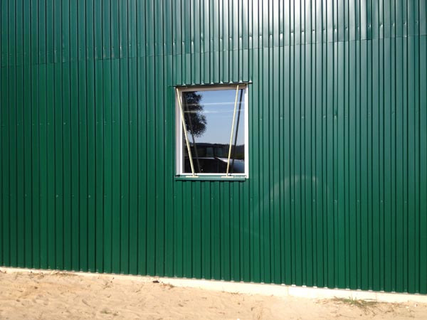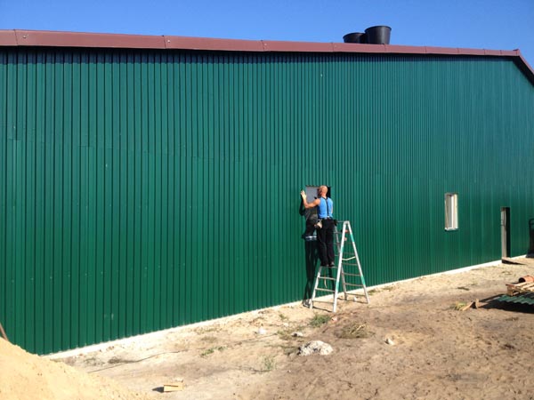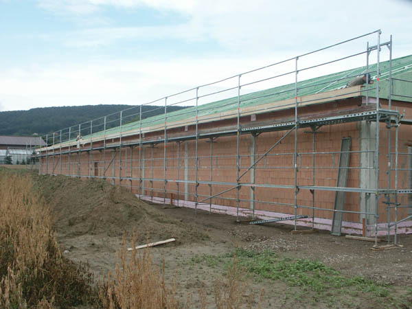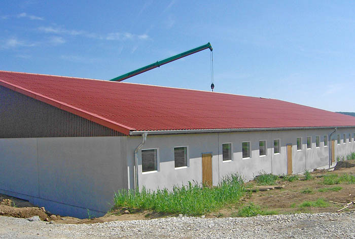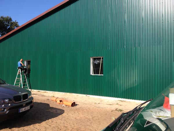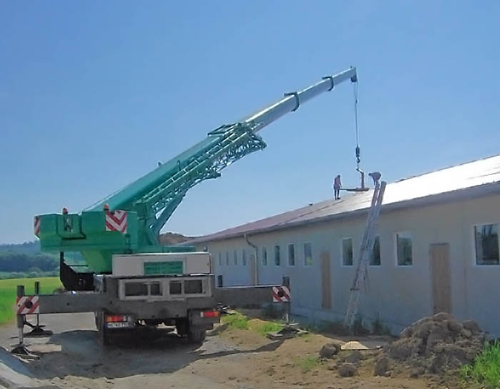 Fertigmontage einer landwirtschaftlich genutzen Halle: Hallenwände.