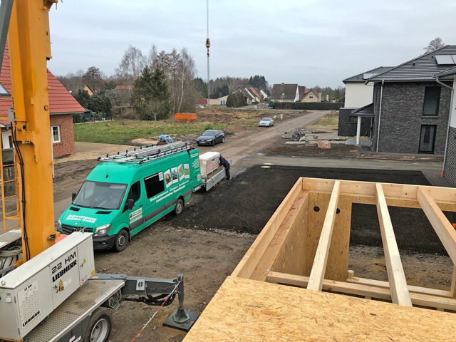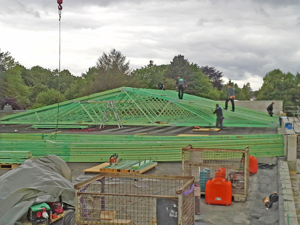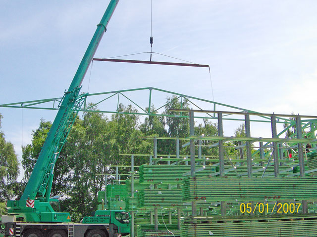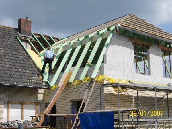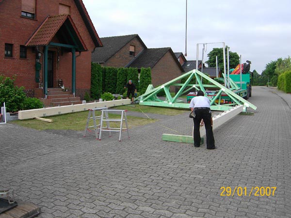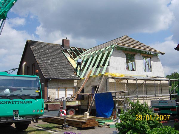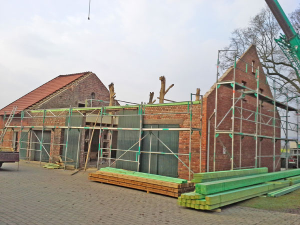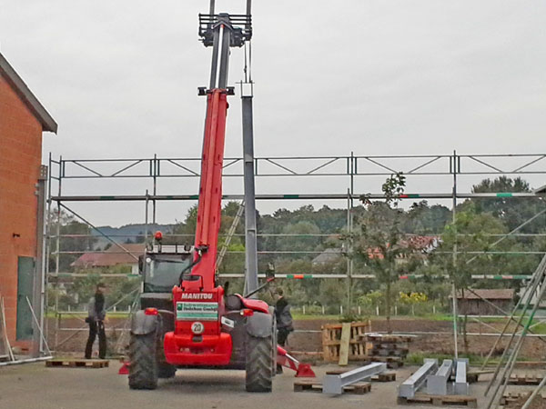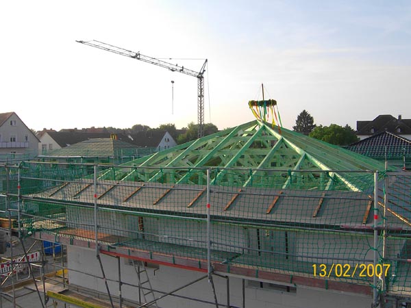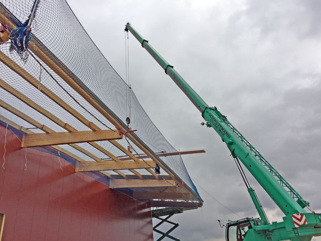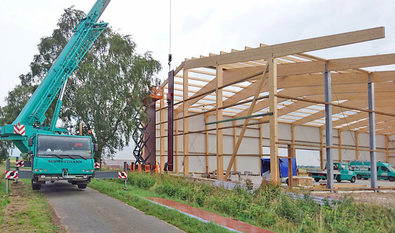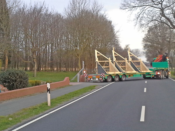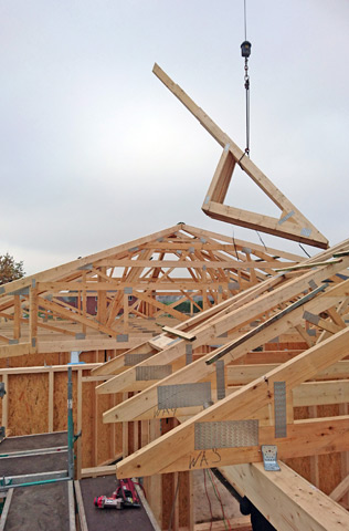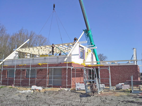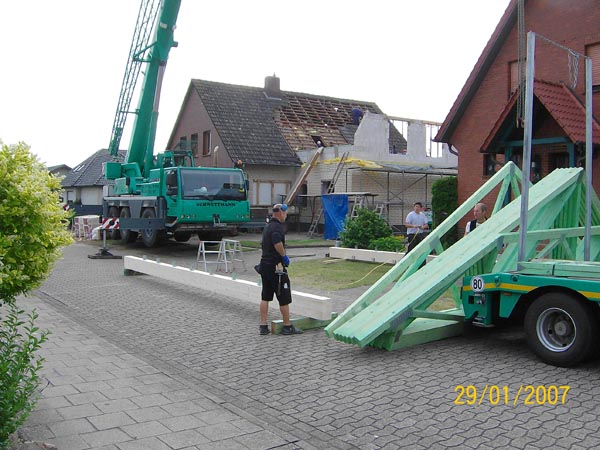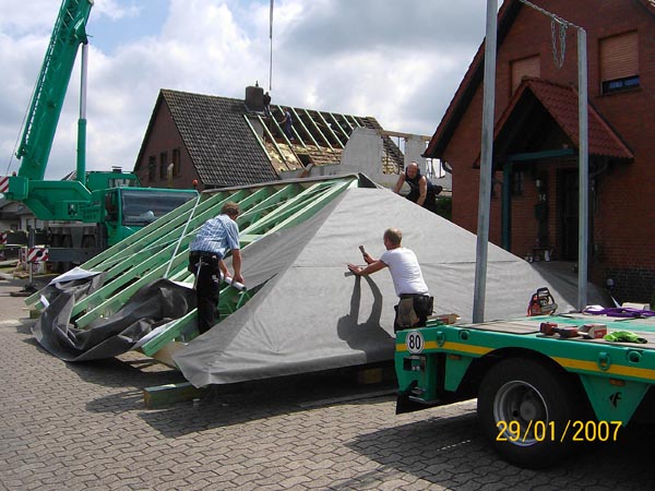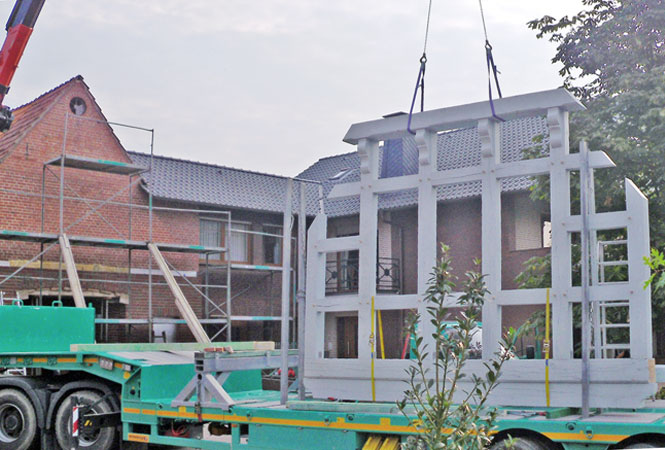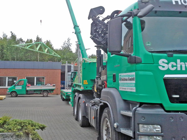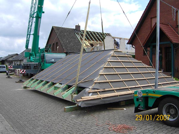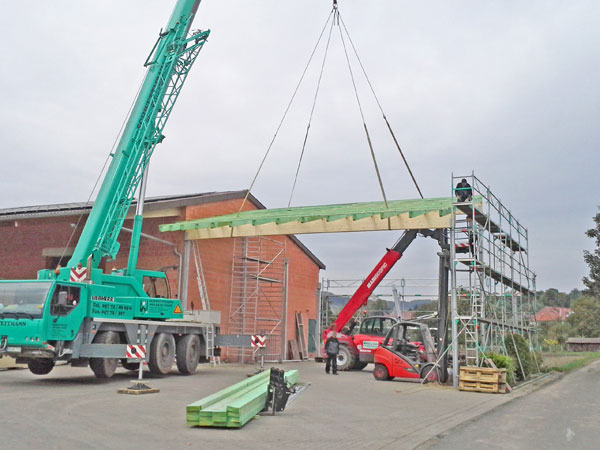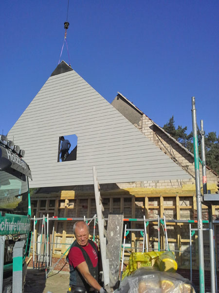 Gauben und viele weitere Elemente werden vorgefertigt und mit Hilfe eines Schwettmann-Ladekrans gerichtet