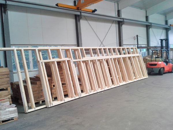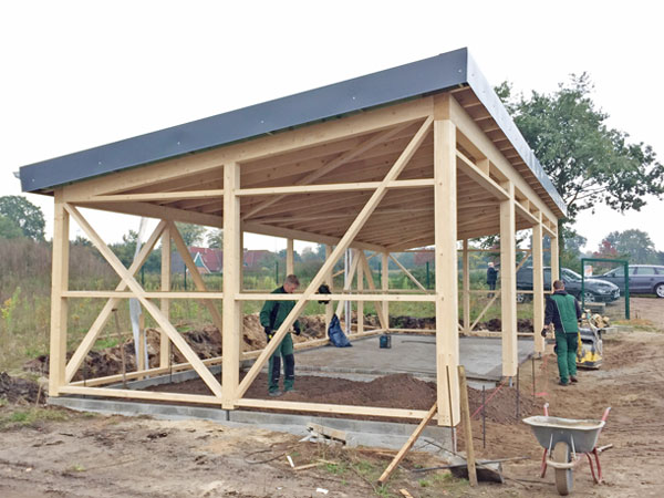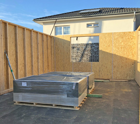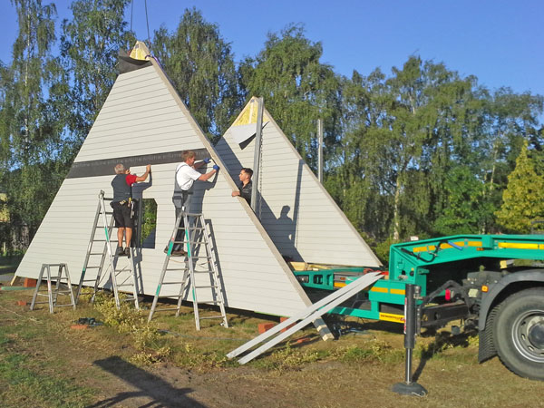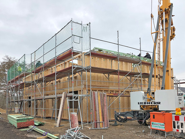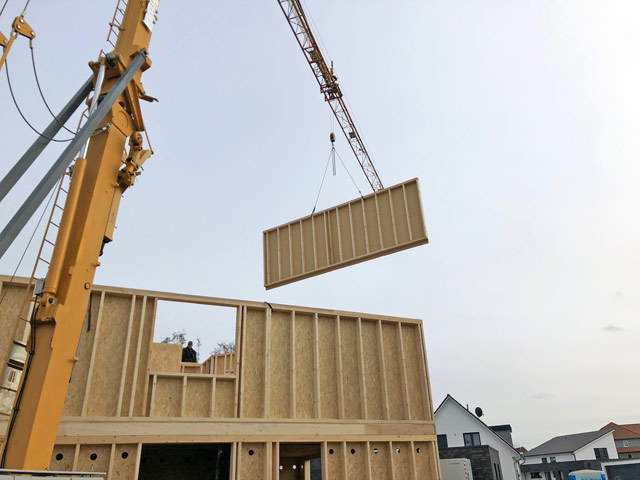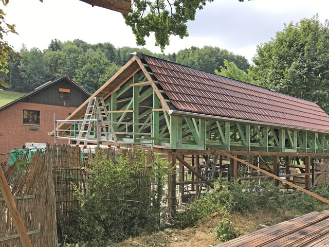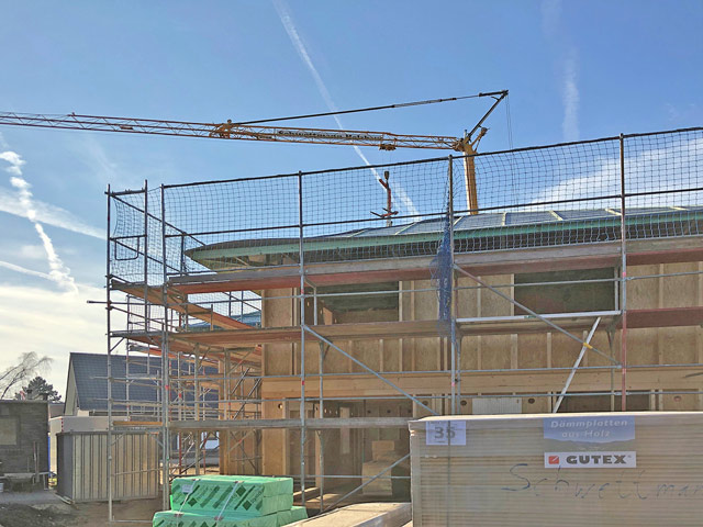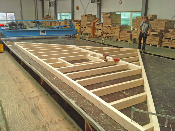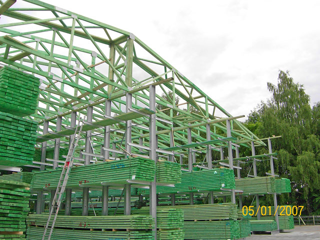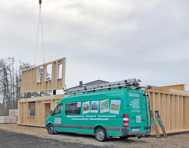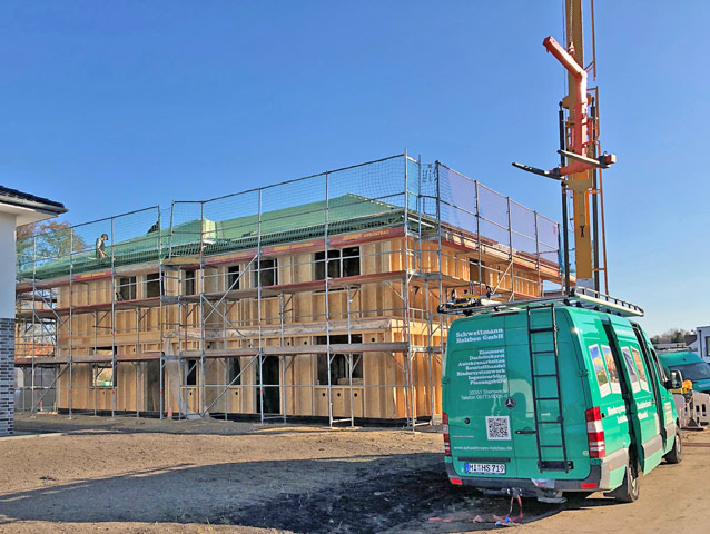 Durch die Vorfertigung der Bauelemente in der Zimmereihalle wird eine extrem kurze Montagezeit beim Kunden ermöglicht.
