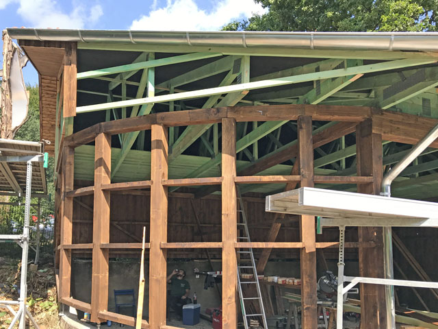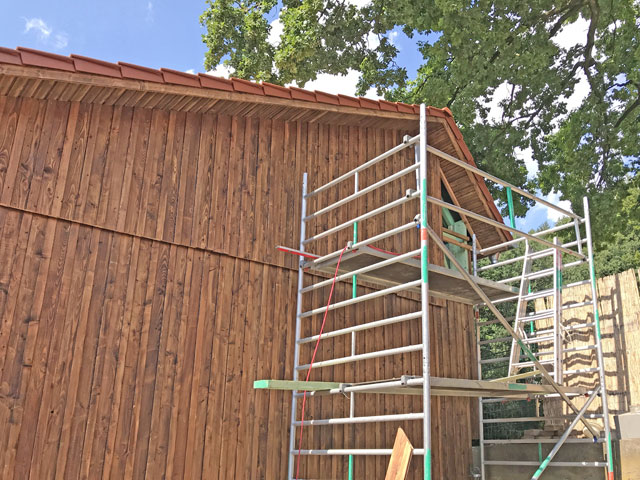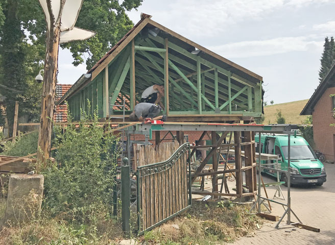 Lieferung und Richten einer repräsentativen Fachwerkwand